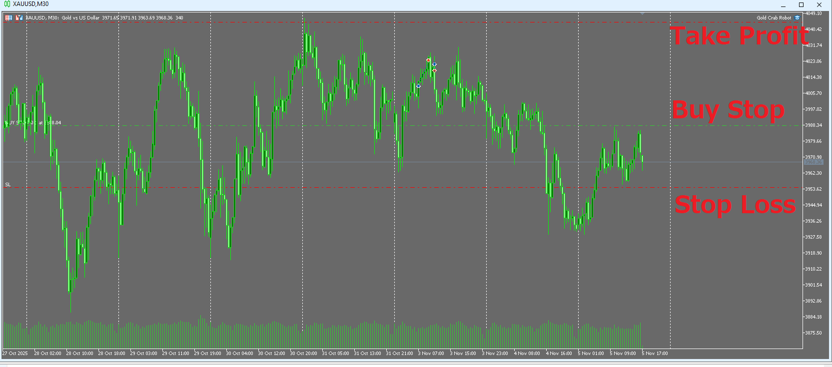 • 入る位置:直近高値の少し上に買いストップ(逆指値)。条件が満たされた時だけ機械的に約定。