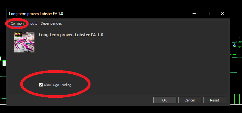 - Permission settings for DLL/WebRequest, if required by the EA, have been configured