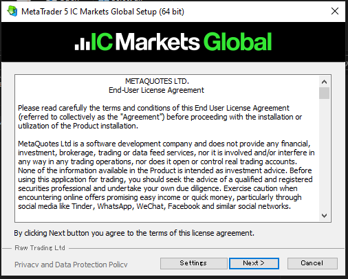 Download the installer (e.g.,BrokerNameSetup5.exe) from your broker’s client portal or similar, and double-click to install.
