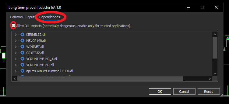 - “Allow DLL imports” is not a must. Check it only if required by the EA.